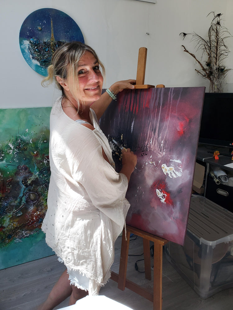 This artist is a regular at the Majestic Gallery Montsûrs exhibitions and recently received the Crédit Mutuel Coup de Coeur Award at the Grande Expo Internationale 2023. A painter since childhood, she grew up near the ocean, a constant source of inspiration in her work. Over the years and through multiple artistic encounters, she has explored different techniques to find fulfillment in contemporary abstract art. She works with acrylic and mixed media, combining natural materials, resin, gold leaf, and fine stones. These materials create a subtle play of light and shadow, which varies depending on the lighting, offering each gaze a unique experience.